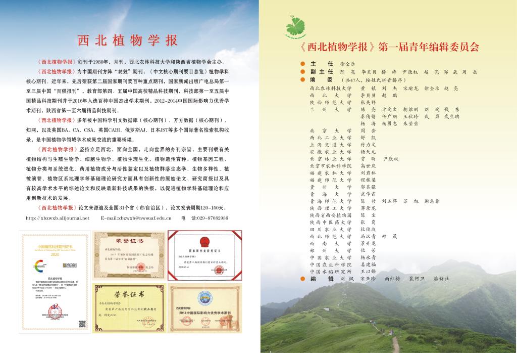 《西北植物学报》为中国期刊方阵“双效”期刊,《中文核心期刊要目总览》植物学科核心期刊(排名第3)。近年来,先后荣获中国杰出学术期刊、中国国际影响力优秀学术期刊、国家期刊奖百种重点期刊、科技部精品科技期刊等荣誉。多年被中国科学引文数据库(核心期刊)、万方数据(核心期刊)、知网以及美国BA、CA、CSA,英国CABI、俄罗斯AJ、日本JST等多个国际著名检索机构收录,是中国植物学领域学术成果走向世界的重要桥梁。