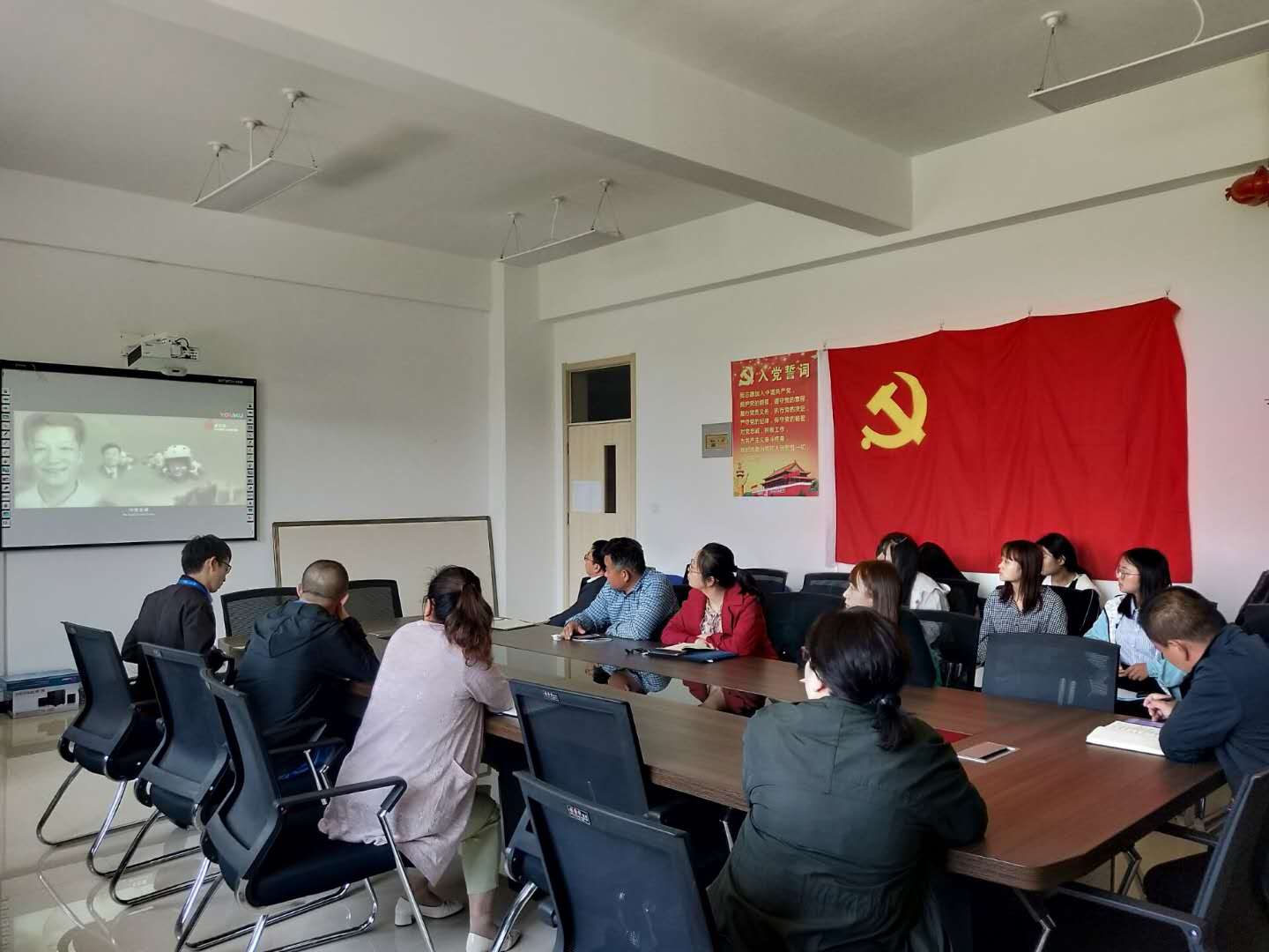 活动中,大家首先观看了党史纪录片“光辉历程”,重温了99年间,中国共产党如何带领全国各族人民从百废待兴站起来,并不断实现国民经济快速发展、人民生活日益富足、科学技术不断进步、国际影响力显著增强。其次,教工党员苏旭同志结合自身教育教学和科研情况向大家做了“立足岗位,追求卓越”的微党课,指出高校教师应当牢记使命,重视政治素养提升;应当爱岗敬业,努力培养创新型人才;应当追求卓越,科学研究不断取得新突破。随后,支部为刘玉萍、苏旭及学生党员秦欣欣同志组织了“政治生日”活动,一同聆听了由入党誓词改编的歌曲“我宣誓”,同时三位同志向大家分享了自己入党经历,且结合党史交谈了关于建党99周年的感想。