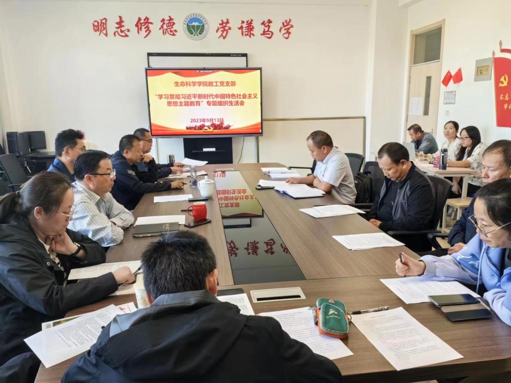 9月13日下午,sm调教 教工党支部召开学习贯彻习近平新时代中国特色社会主义思想主题教育专题组织生活会。sm调教 教工党支部全体党员参加会议,会议由支部书记苏旭同志主持。