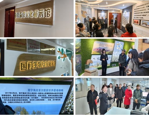 西宁海关技术中心工作人员带领老师们参观了海关监管文化展示馆、西宁海关国门生物安全展示馆和海关技术中心的检验检测实验室,了解了西宁海关业务检测内容及其在青海省发展中发挥的作用,参观了海关检验检疫线虫、野燕麦等外来(入侵)生物标本、气相色谱高分辨质谱联用仪、液相色谱高分辨质谱联用仪等检测仪器。