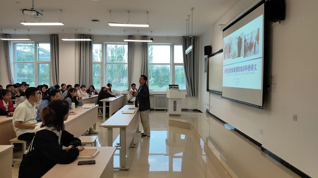 范建平根据学院专业特色在开学第一课中从新冠肺炎病毒的结构引入正题,从生物的方面进行科普,让同学们对如何全面预防新冠有全面的认识。随后带领同学们学习了《习近平:在中央政治局常委会会议研究应对新型冠状病毒肺炎疫情工作时的讲话》,与同学们分享了国内外最新新闻报道,引导同学们要在纷繁复杂的媒体报道中,学习利用辩证思维全面看待疫情防控。