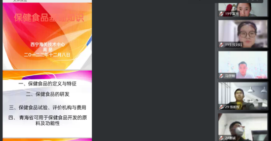 为提升学生的专业实习能力,保障专业实习有序进行,2022年12月8日,曾阳教授邀请西宁海关技术中心工程师高昆,为2019级生物技术班开展了以“保健食品基础知识”为题的线上报告交流会。