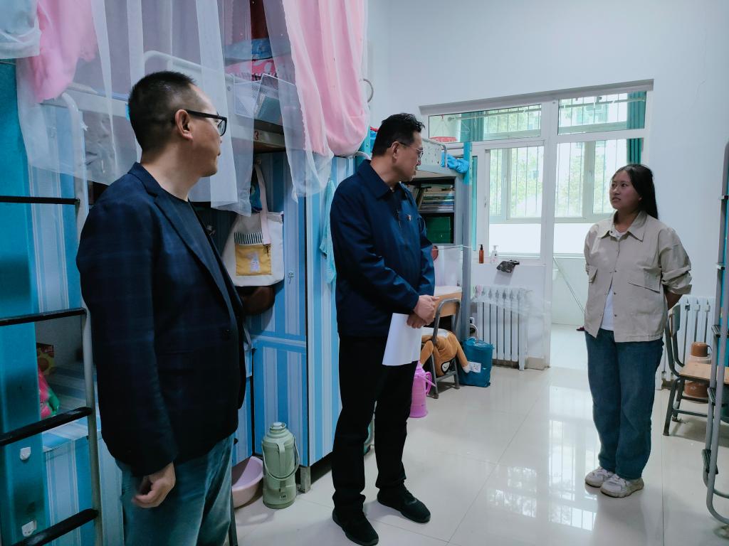 每到一间宿舍,院领导亲切询问学生来自哪里、食堂饭菜怎么样、气候是否适应、存在的困难等多方面情况,了解同学们到校厚度适应情况,耐心倾听学生们的反馈,对学生提出的问题现场给予了答复,同时协调解决卫生间阀门漏水等问题。