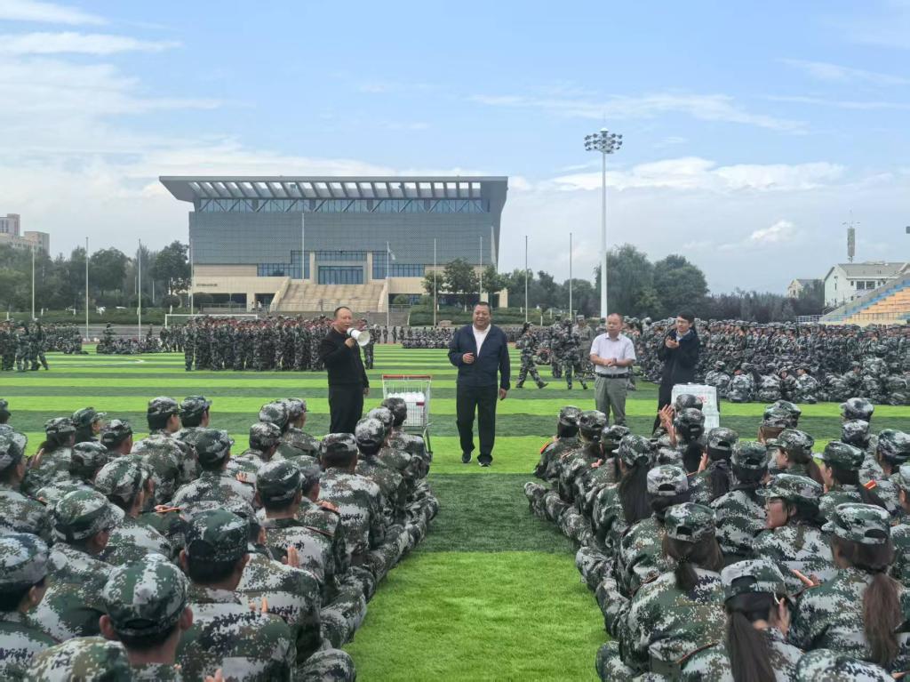 领导班子、2025级新生班主任及学生会代表一行前往操场,看望慰问正在刻苦训练的2025级新生,为他们送去饮用水与亲切关怀。