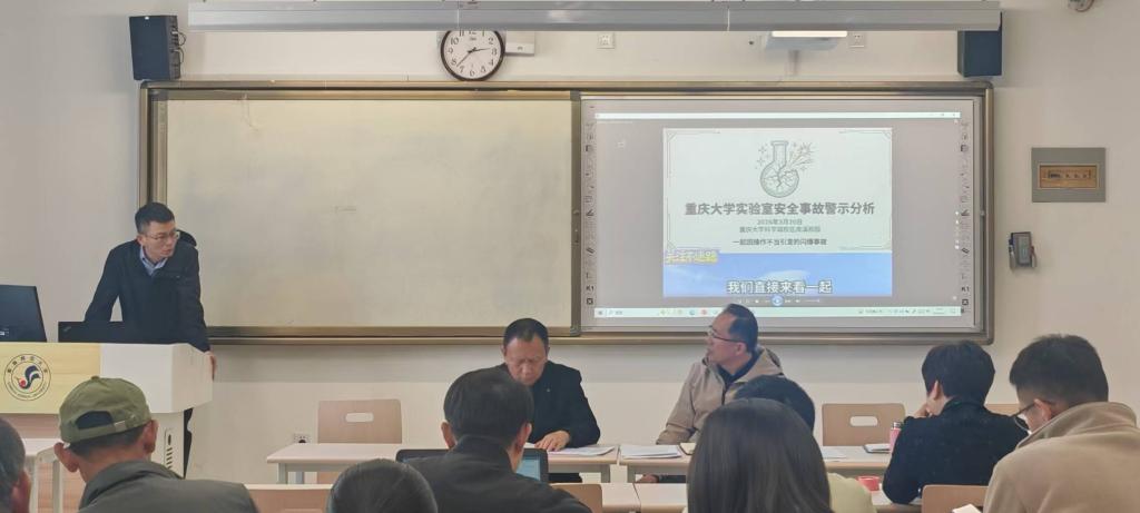 会上,集中观看了《重庆大学实验安全事故警示分析》警示教育片。惨痛的事故教训以及深刻的事故原因剖析,给在场每一位教职工敲响了安全警钟。随后,陈哲副院长传达了《sm调教
