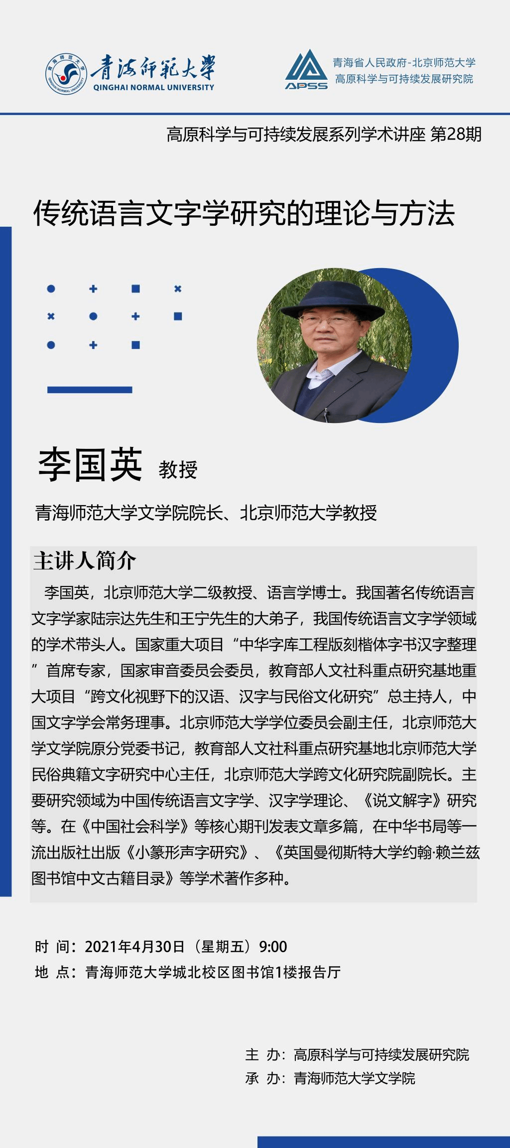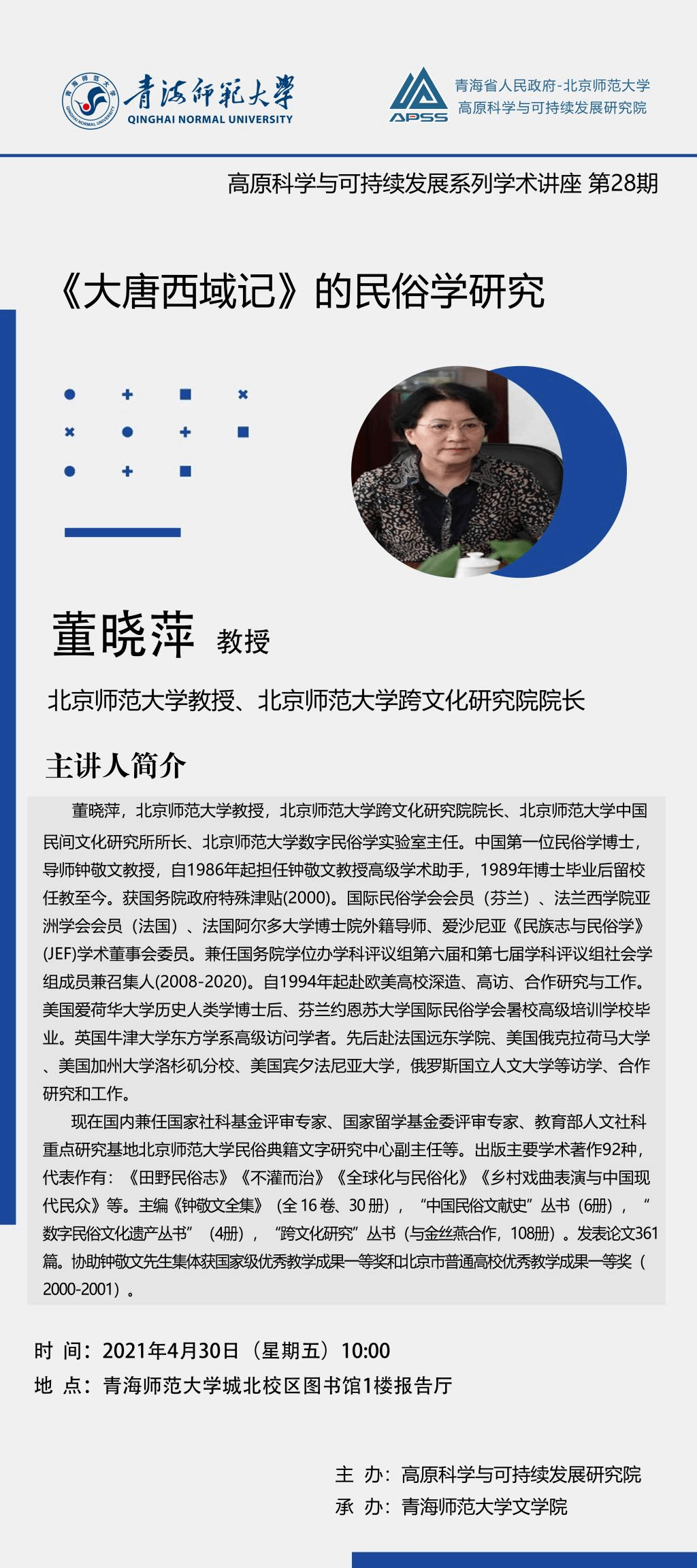 为进一步促进我校高原历史与文化研究,为我校文科教学与科研提供新思路、新方法,定于2021年4月30日(星期五)举办“高原科学与可持续发展”系列学术讲座(第28期)2场。现将有关事项通知如下: